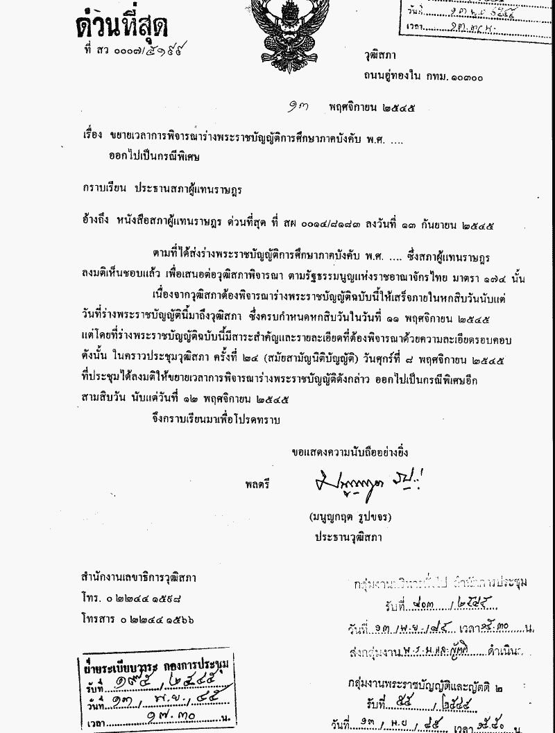 ขยายเวลาการพิจารณาร่างพระราชบัญญัติการศึกษาภาคบังคับ พ.ศ..... ออกไปเป็นกรณีพิเศษ |
