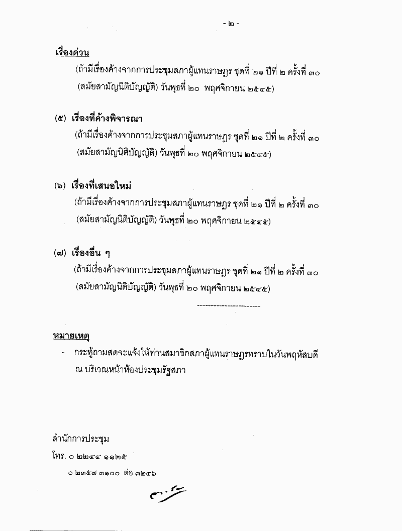 • ระเบียบวาระการประชุมสภาผู้แทนราษฎร ชุดที่ 21 ปีที่ 2 ครั้งที่ 31 (สมัยสามัญนิติบัญญัติ) วันพฤหัสบดีที่ 21 พฤศจิกายน 2545