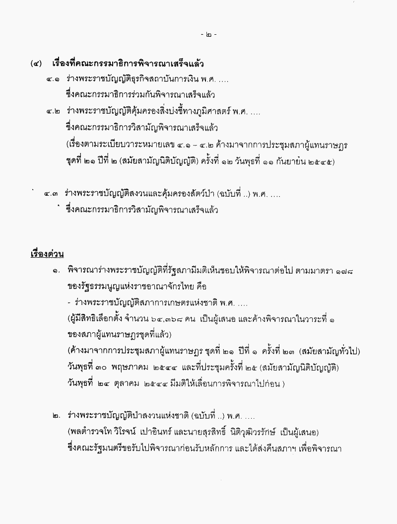 • ระเบียบวาระการประชุมสภาผู้แทนราษฎร ชุดที่ 21 ปีที่ 2 ครั้งที่ 15 (สมัยสามัญนิติบัญญัติ) วันอังคารที่ 24 กันยายน 2545