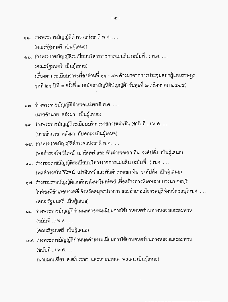 • ระเบียบวาระการประชุมสภาผู้แทนราษฎร ชุดที่ 21 ปีที่ 2 ครั้งที่ 15 (สมัยสามัญนิติบัญญัติ) วันอังคารที่ 24 กันยายน 2545