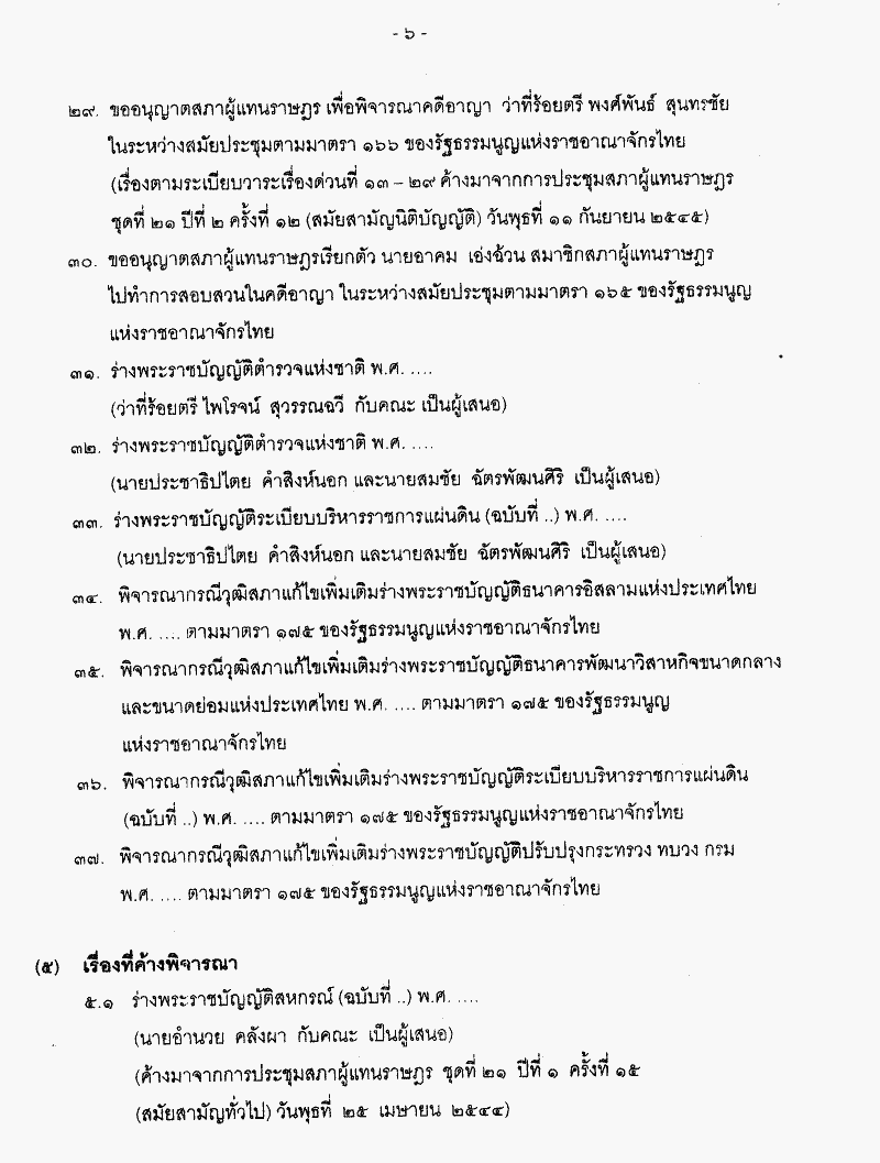 • ระเบียบวาระการประชุมสภาผู้แทนราษฎร ชุดที่ 21 ปีที่ 2 ครั้งที่ 15 (สมัยสามัญนิติบัญญัติ) วันอังคารที่ 24 กันยายน 2545