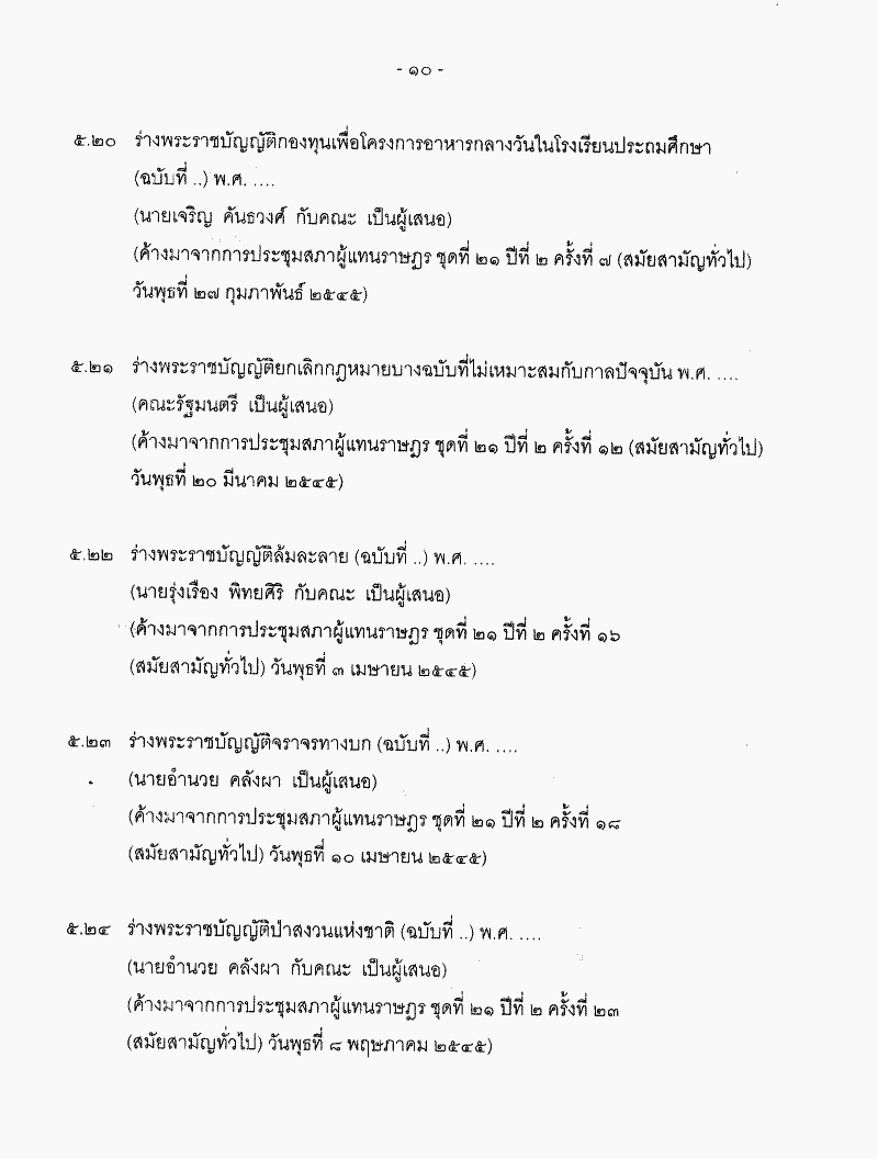 • ระเบียบวาระการประชุมสภาผู้แทนราษฎร ชุดที่ 21 ปีที่ 2 ครั้งที่ 15 (สมัยสามัญนิติบัญญัติ) วันอังคารที่ 24 กันยายน 2545