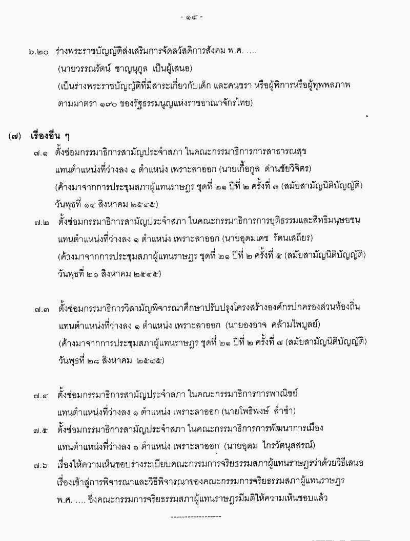 • ระเบียบวาระการประชุมสภาผู้แทนราษฎร > ชุดที่ 21 > ปีที่ 2 > สมัยสามัญนิติบัญญัติ > ครั้งที่ 15