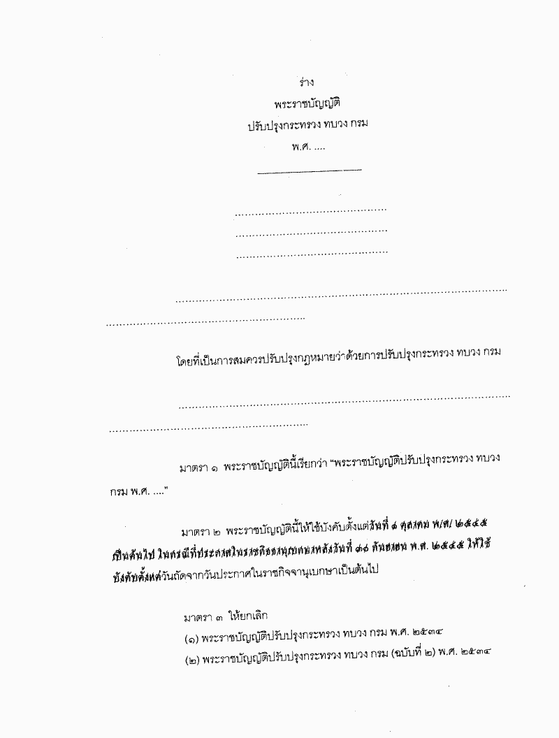 • ร่างพระราชบัญญัติปรับปรุงกระทรวง ทบวง กรม พ.ศ.....