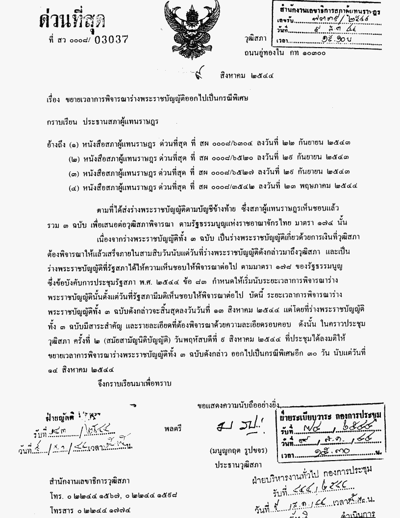ขยายเวลาการพิจารณาร่างพระราชบัญญัติออกไปเป็นกรณีพิเศษ |