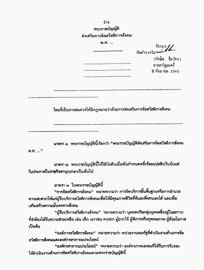 ชื่อเอกสาร :   ร่างพระราชบัญญัติส่งเสิรมการจัดสวัสดิการสังคม พ.ศ..... (นายอำนวย คลังผา กับคณะ เป็นผู้เสนอ) (เป็นร่างพระราชบัญญัติที่มีสาระเกี่ยวกับเด็ก และคนชรา หรือผู้พิการหรือผู้ทุพพลภาพตามมาตรา 190 ของรัฐธรรมนูญแห่งราชอาณาจักรไทย)