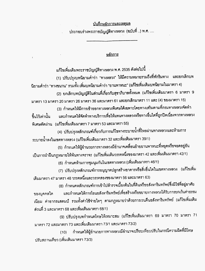 ชื่อเอกสาร :   ร่างพระราชบัญญัติทางหลวง (ฉบับที่..) พ.ศ..... (นายวรรณรัตน์ ชาญนุกูล และนายเทวัญ ลิปตพัลลภ เป็นผู้เสนอ)
