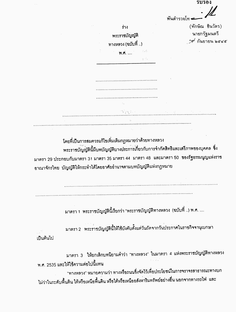 ชื่อเอกสาร :   ร่างพระราชบัญญัติทางหลวง (ฉบับที่..) พ.ศ..... (นายวรรณรัตน์ ชาญนุกูล และนายเทวัญ ลิปตพัลลภ เป็นผู้เสนอ)