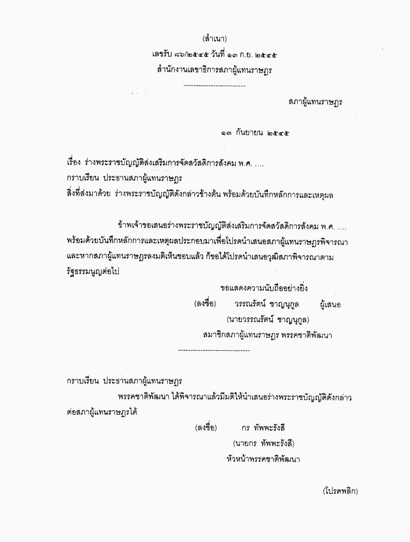 • ร่างพระราชบัญญัติส่งเสริมการจัดสวัสดิการสังคม พ.ศ.....