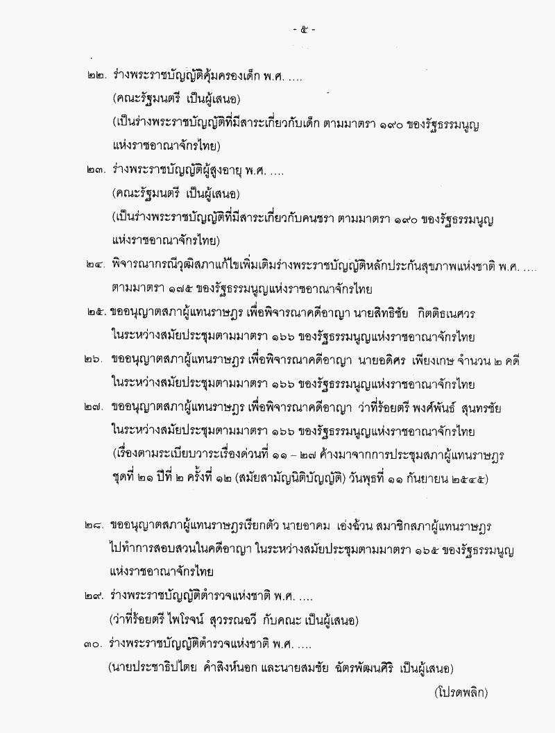 • ระเบียบวาระการประชุมสภาผู้แทนราษฎร ชุดที่ 21 ปีที่ 2 ครั้งที่ 17 (สมัยสามัญนิติบัญญัติ) วันพุธที่ 2 ตุลาคม 2545