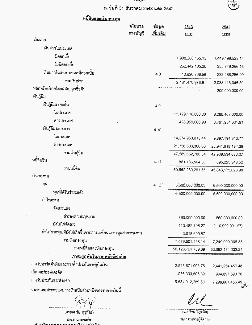 • รายงานกิจการประจำปี งบดุล บัญชีกำไรและขาดทุนของธนาคารเพื่อการส่งออกและนำเข้าแห่งประเทศไทย ประจำปี 2543