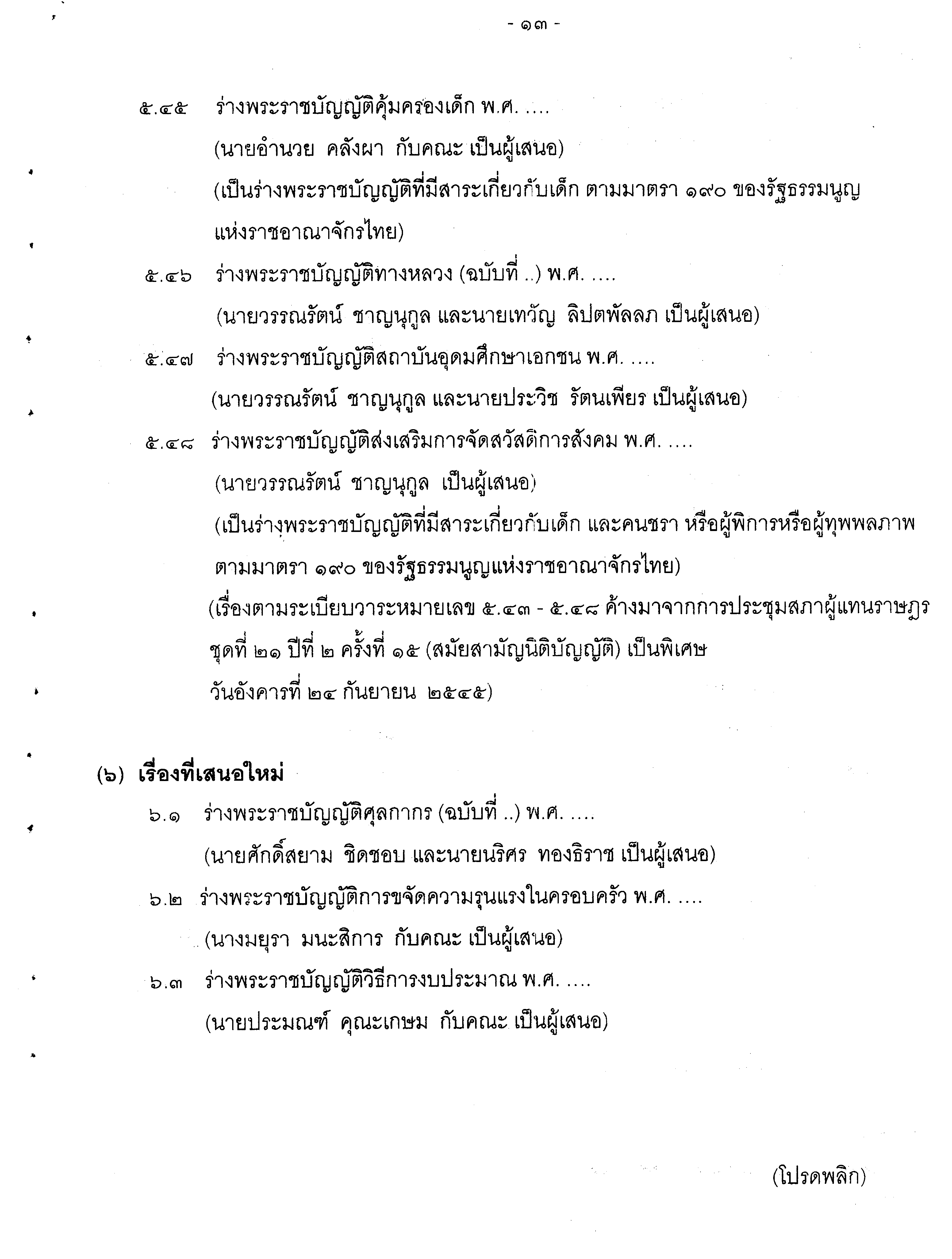 • ระเบียบวาระการประชุมสภาผู้แทนราษฎร ชุดที่ 21 ปีที่ 2 ครั้งที่ 17 (สมัยสามัญนิติบัญญัติ) วันพุธที่ 2 ตุลาคม 2545