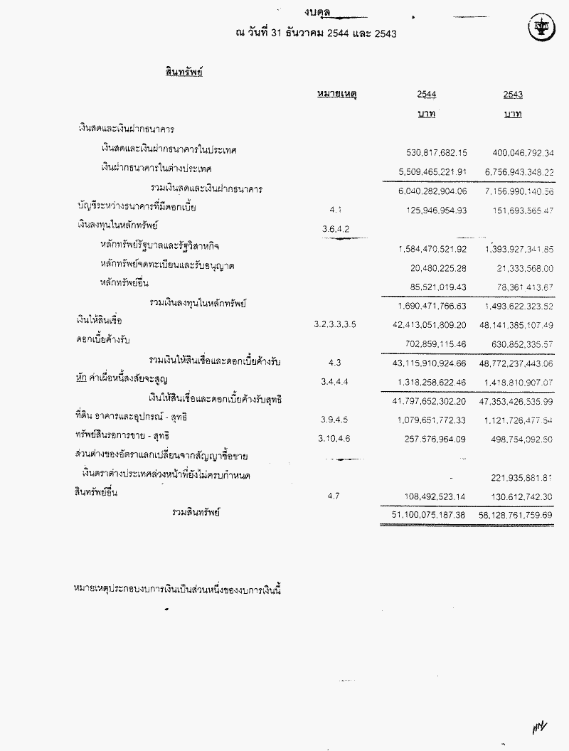 • รายงานกิจการประจำปี งบดุล บัญชีกำไรและขาดทุนของธนาคารเพื่อการส่งออกและนำเข้าแห่งประเทศไทย ประจำปี 2544