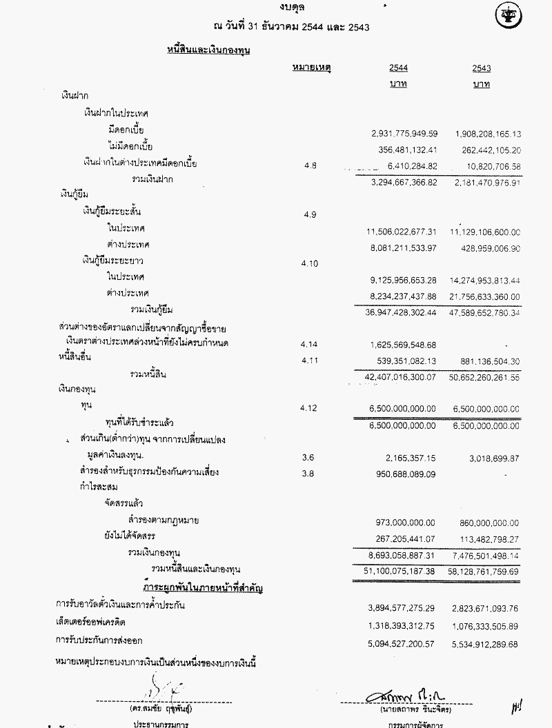 • รายงานกิจการประจำปี งบดุล บัญชีกำไรและขาดทุนของธนาคารเพื่อการส่งออกและนำเข้าแห่งประเทศไทย ประจำปี 2544