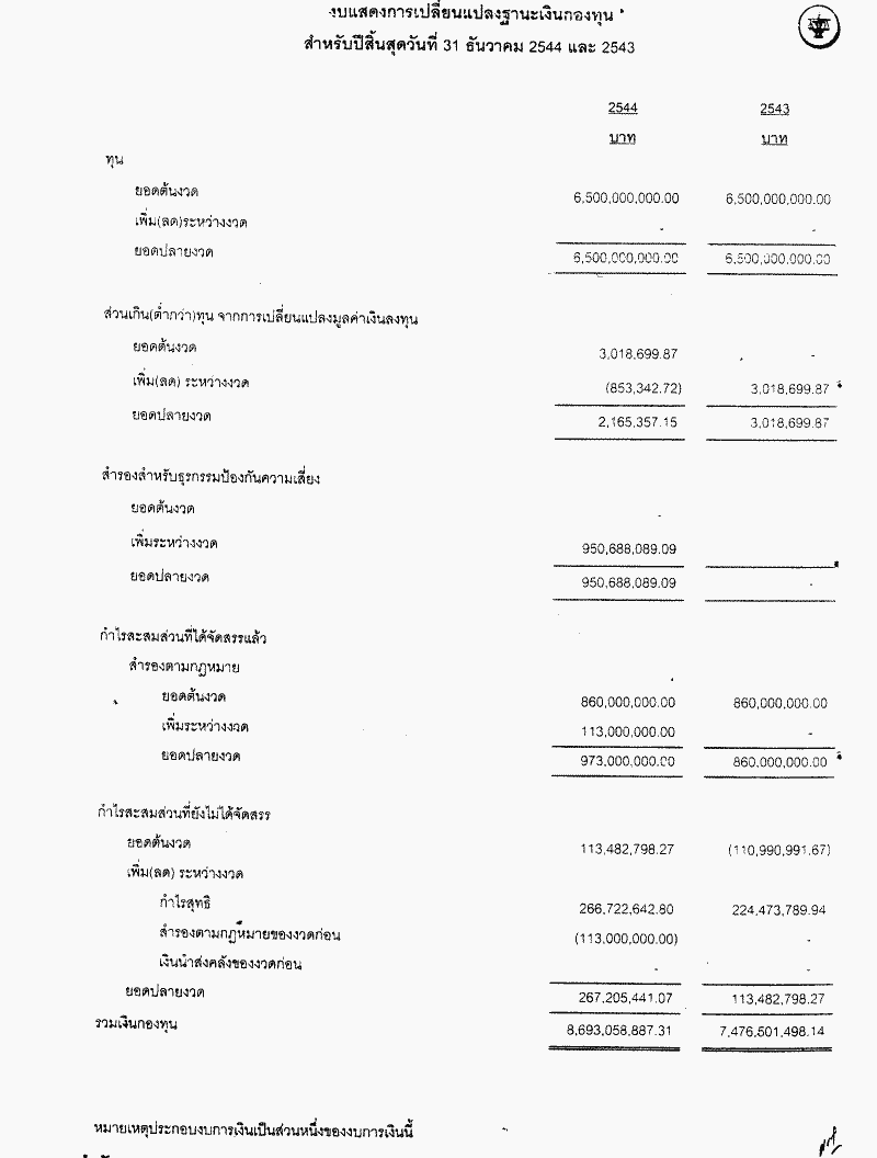 • รายงานกิจการประจำปี งบดุล บัญชีกำไรและขาดทุนของธนาคารเพื่อการส่งออกและนำเข้าแห่งประเทศไทย ประจำปี 2544