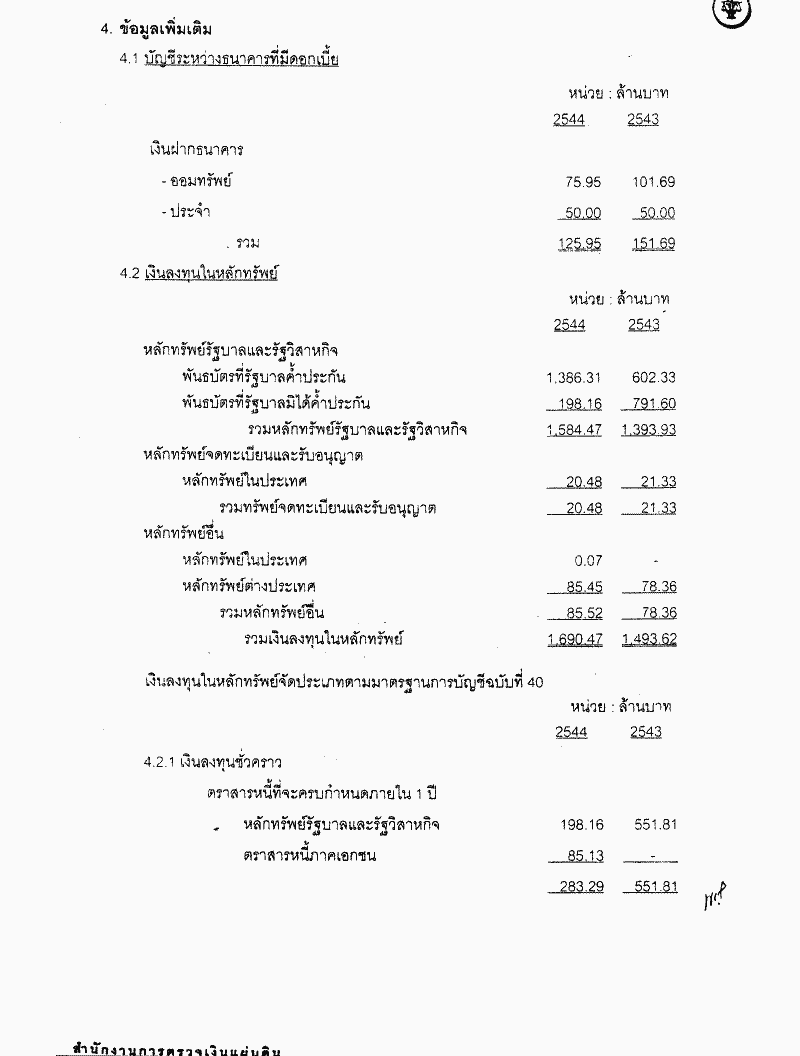 ชื่อเอกสาร :   รับทราบรายงานกิจการประจำปี งบดุล บัญชีกำไรและขาดทุนของธนาคารเพื่อการส่งออกและนำเข้าแห่งประเทศไทย ประจำปี 2544
