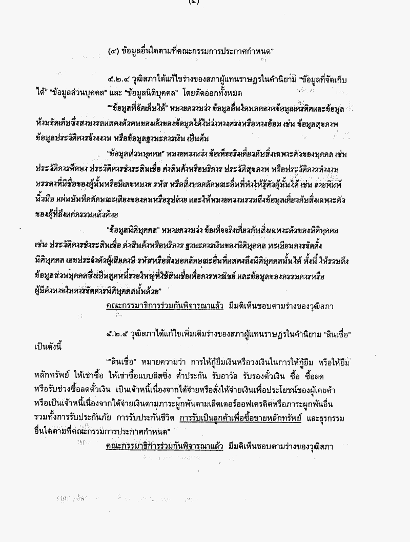 ร่างพระราชบัญญัติการประกอบธุรกิจข้อมูลเครดิต พ.ศ.... ซึ่งคณะกรรมาธิการร่วมกันพิจารณาเสร็จแล้ว
