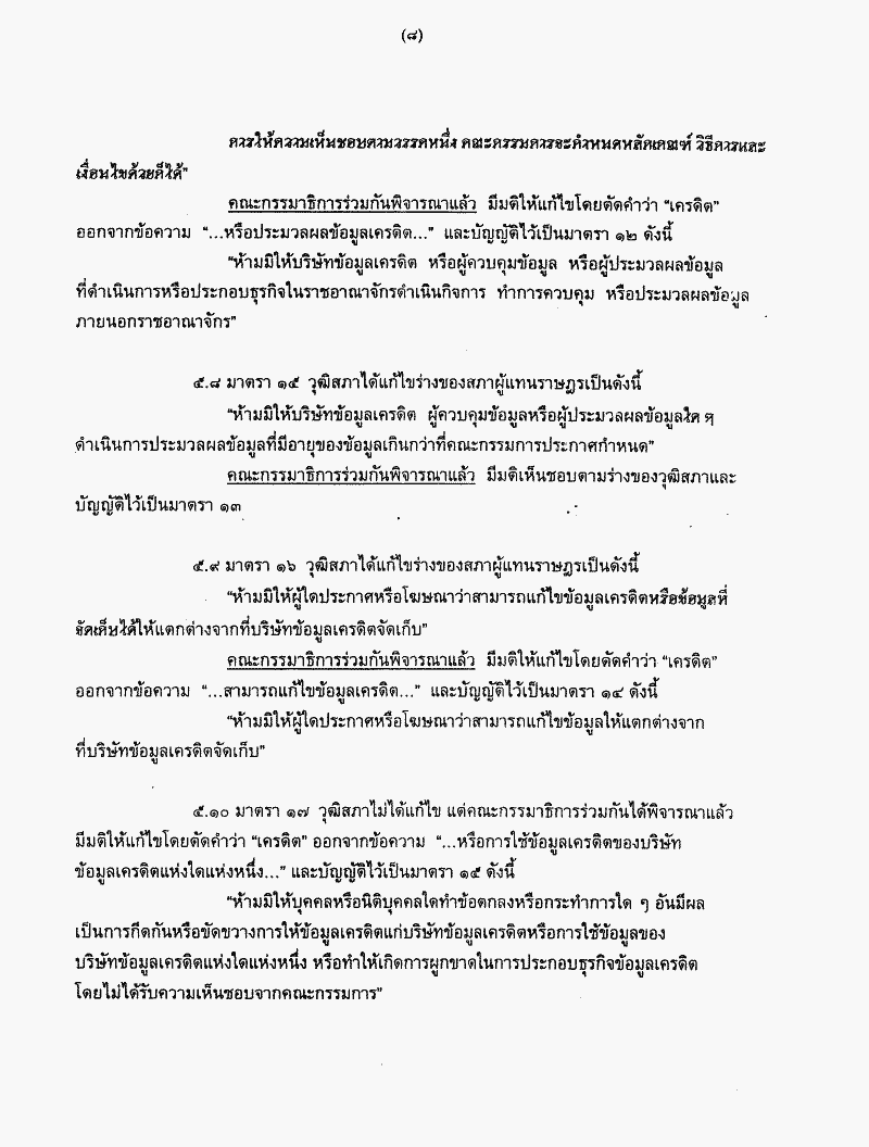 ร่างพระราชบัญญัติการประกอบธุรกิจข้อมูลเครดิต พ.ศ.... ซึ่งคณะกรรมาธิการร่วมกันพิจารณาเสร็จแล้ว