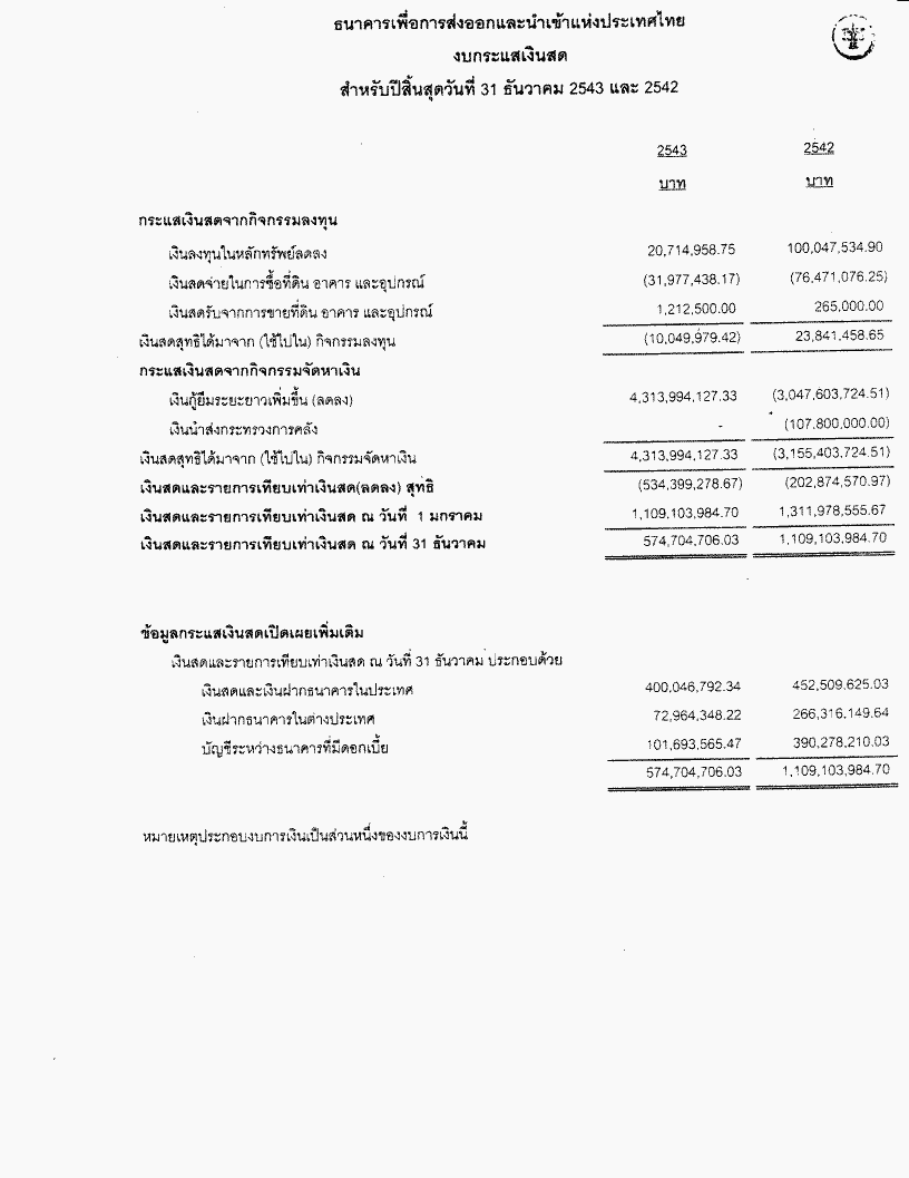 • รายงานกิจการประจำปี งบดุล บัญชีกำไรและขาดทุนของธนาคารเพื่อการส่งออกและนำเข้าแห่งประเทศไทย ประจำปี 2543