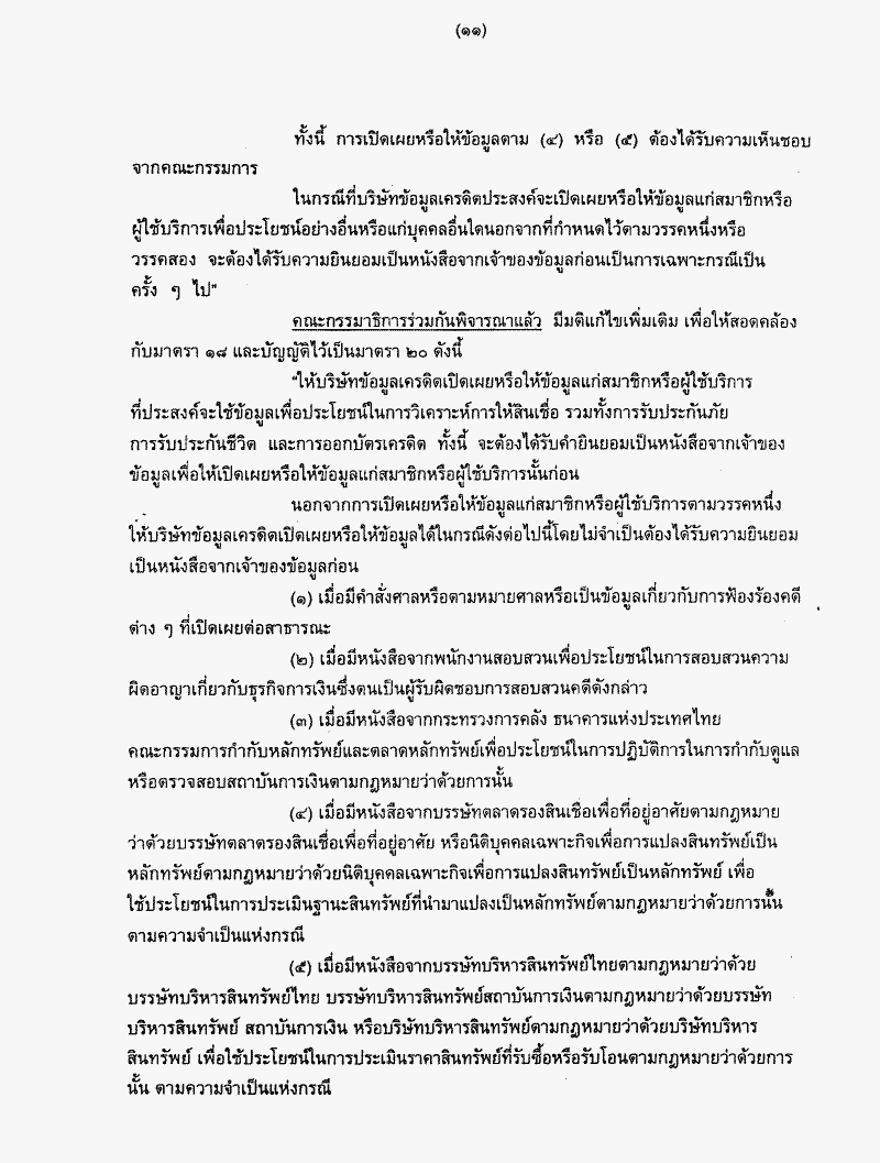 ร่างพระราชบัญญัติการประกอบธุรกิจข้อมูลเครดิต พ.ศ.... ซึ่งคณะกรรมาธิการร่วมกันพิจารณาเสร็จแล้ว