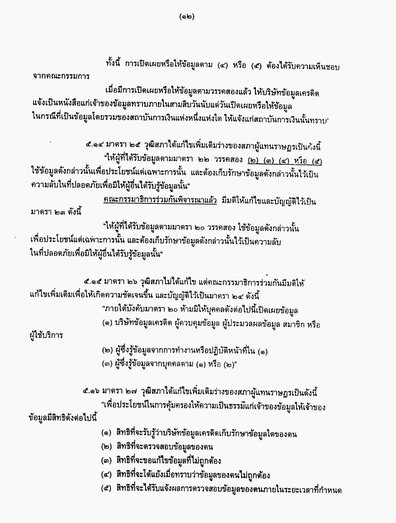 ร่างพระราชบัญญัติการประกอบธุรกิจข้อมูลเครดิต พ.ศ.... ซึ่งคณะกรรมาธิการร่วมกันพิจารณาเสร็จแล้ว