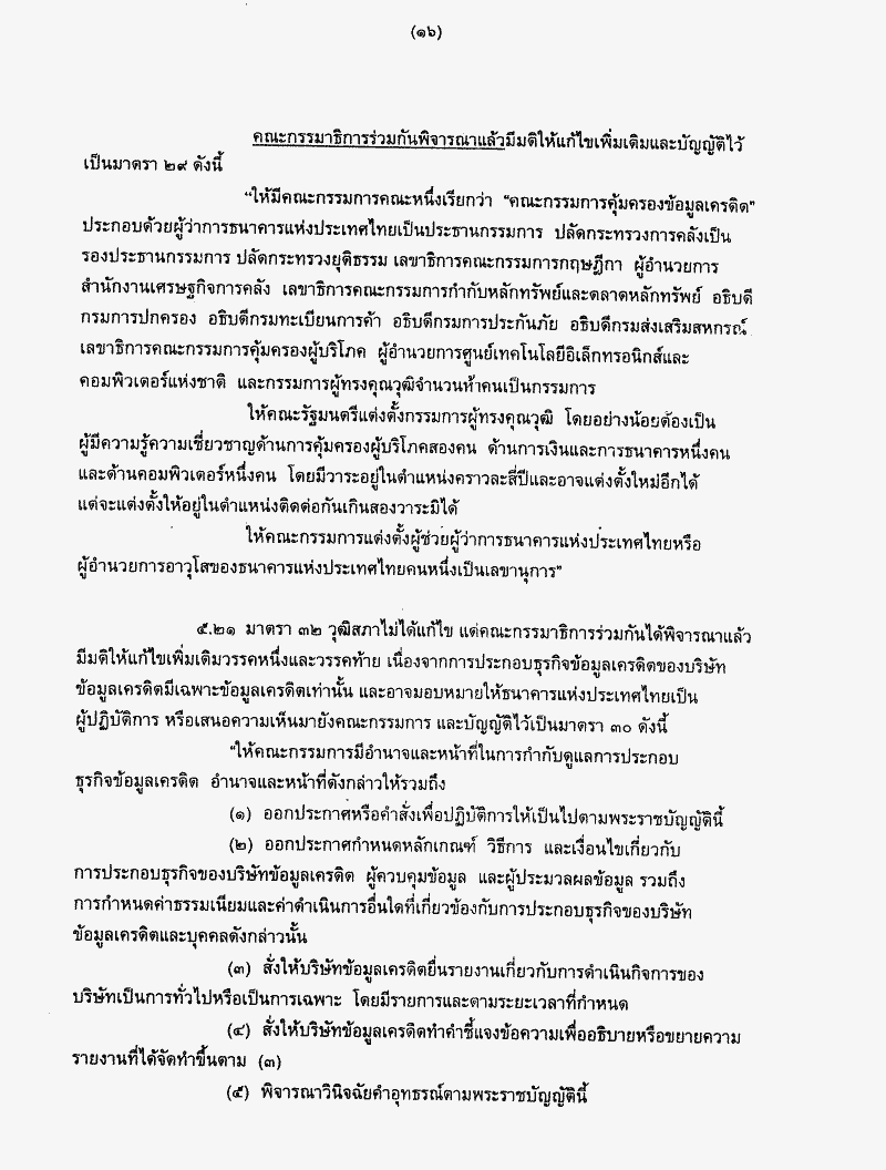 ร่างพระราชบัญญัติการประกอบธุรกิจข้อมูลเครดิต พ.ศ.... ซึ่งคณะกรรมาธิการร่วมกันพิจารณาเสร็จแล้ว