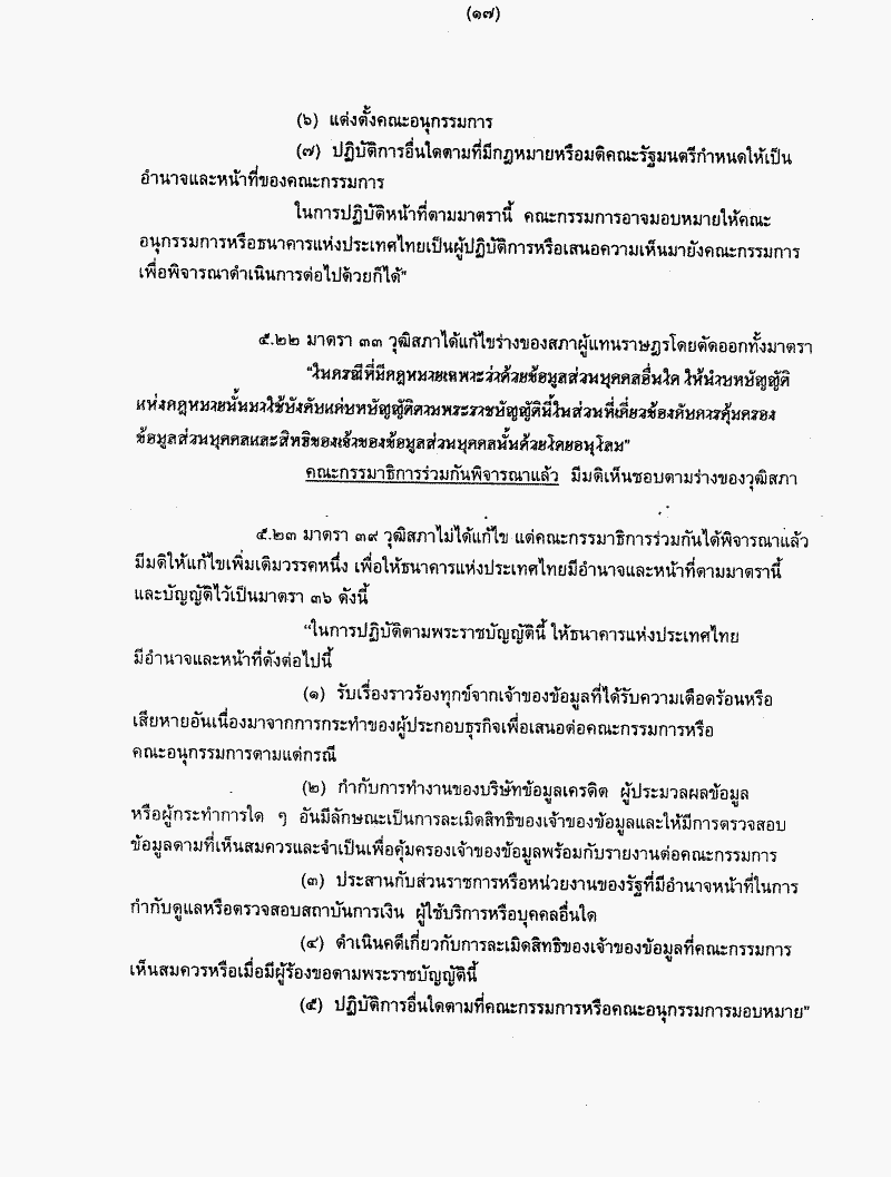 ร่างพระราชบัญญัติการประกอบธุรกิจข้อมูลเครดิต พ.ศ.... ซึ่งคณะกรรมาธิการร่วมกันพิจารณาเสร็จแล้ว