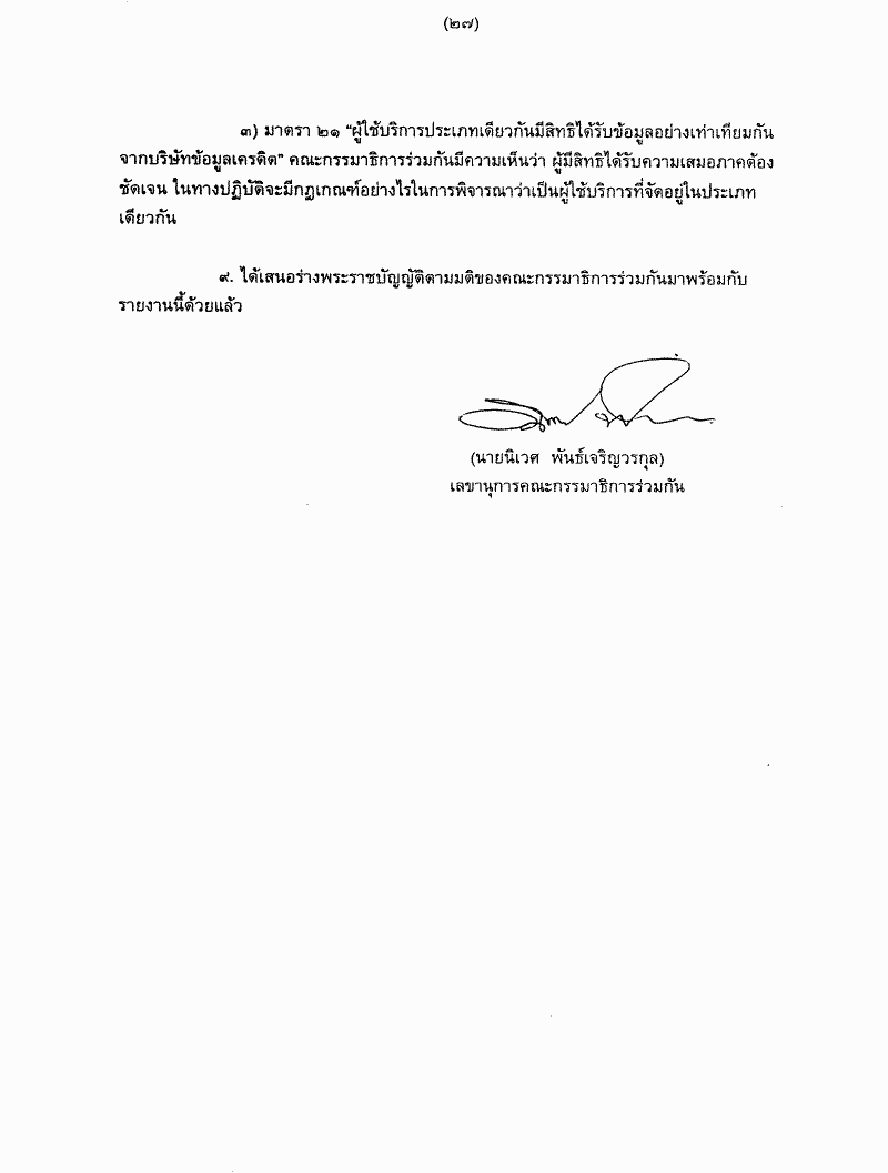 ร่างพระราชบัญญัติการประกอบธุรกิจข้อมูลเครดิต พ.ศ.... ซึ่งคณะกรรมาธิการร่วมกันพิจารณาเสร็จแล้ว