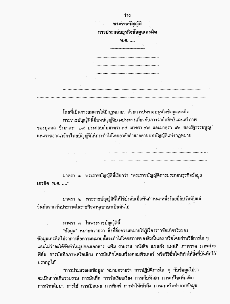 ร่างพระราชบัญญัติการประกอบธุรกิจข้อมูลเครดิต พ.ศ....