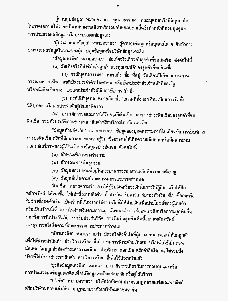 ร่างพระราชบัญญัติการประกอบธุรกิจข้อมูลเครดิต พ.ศ....