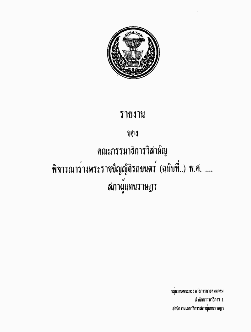ชื่อเอกสาร :   ร่างพระราชบัญญัติรถยนตร์ (ฉบับที่..) พ.ศ..... ซึ่งคณะกรรมาธิการวิสามัญพิจารณาเสร็จแล้ว