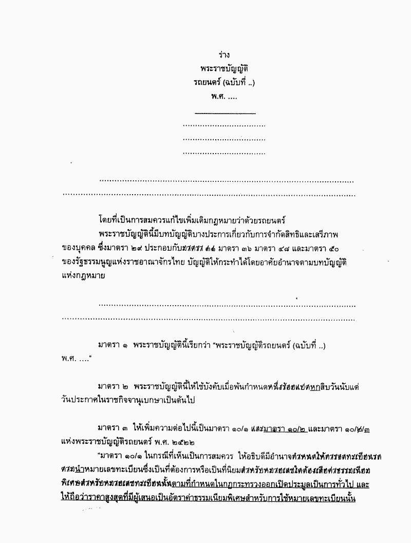 • ร่างพระราชบัญญัติรถยนตร์ (ฉบับที่..) พ.ศ.....