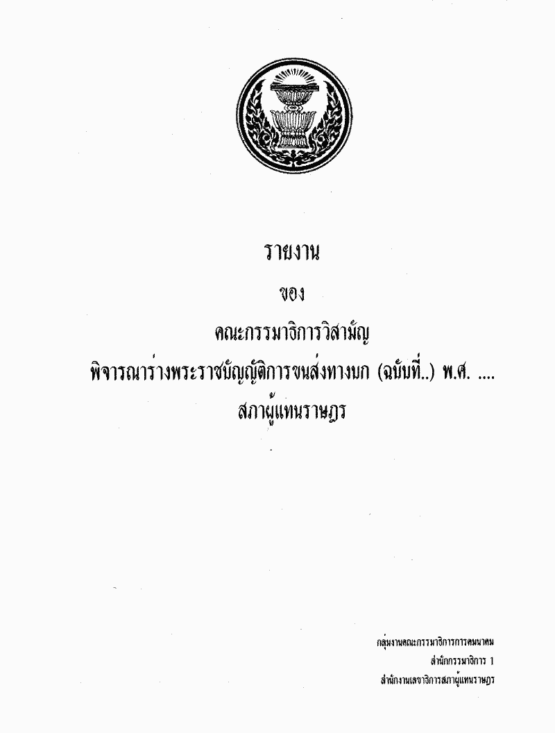 ชื่อเอกสาร :   ร่างพระราชบัญญัติการขนส่งทางบก (ฉบับที่..) พ.ศ..... ซึ่งคณะกรรมาธิการวิสามัญพิจารณาเสร็จแล้ว