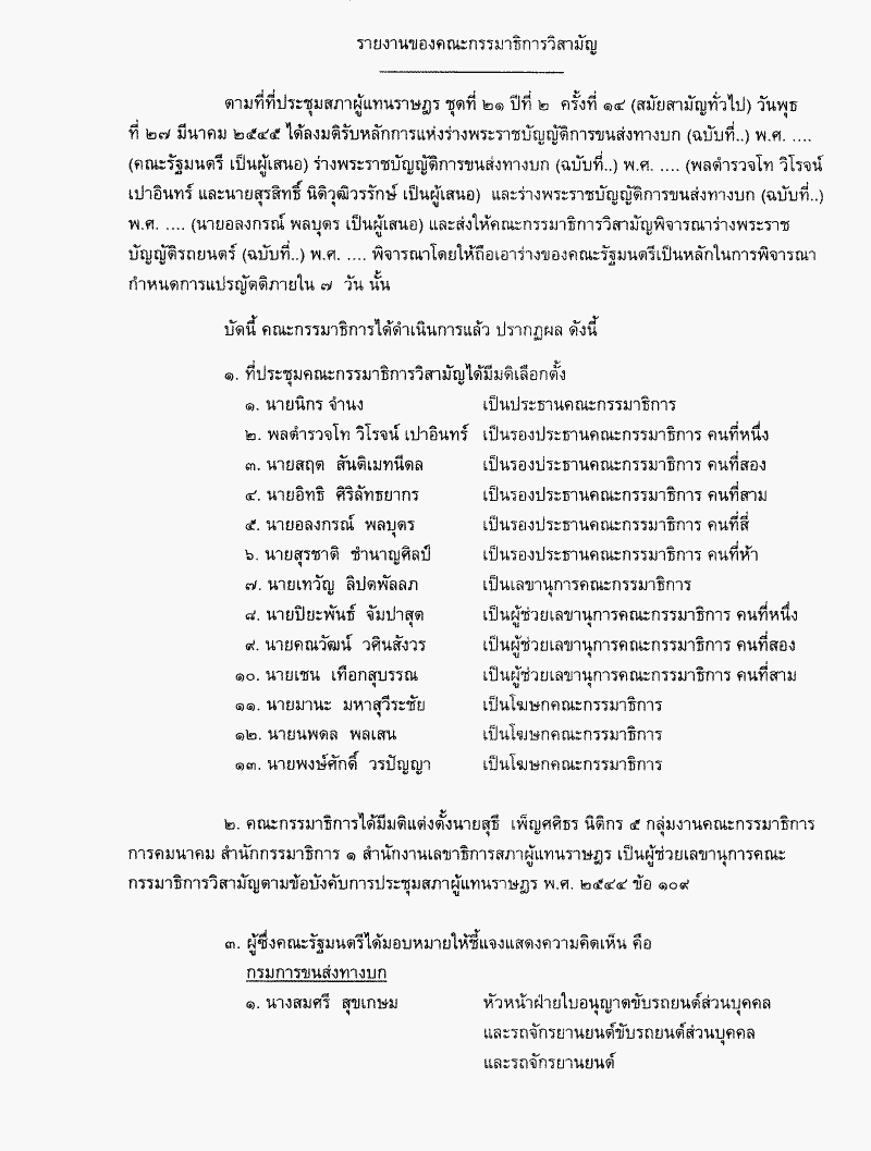 ชื่อเอกสาร :   ร่างพระราชบัญญัติการขนส่งทางบก (ฉบับที่..) พ.ศ..... ซึ่งคณะกรรมาธิการวิสามัญพิจารณาเสร็จแล้ว