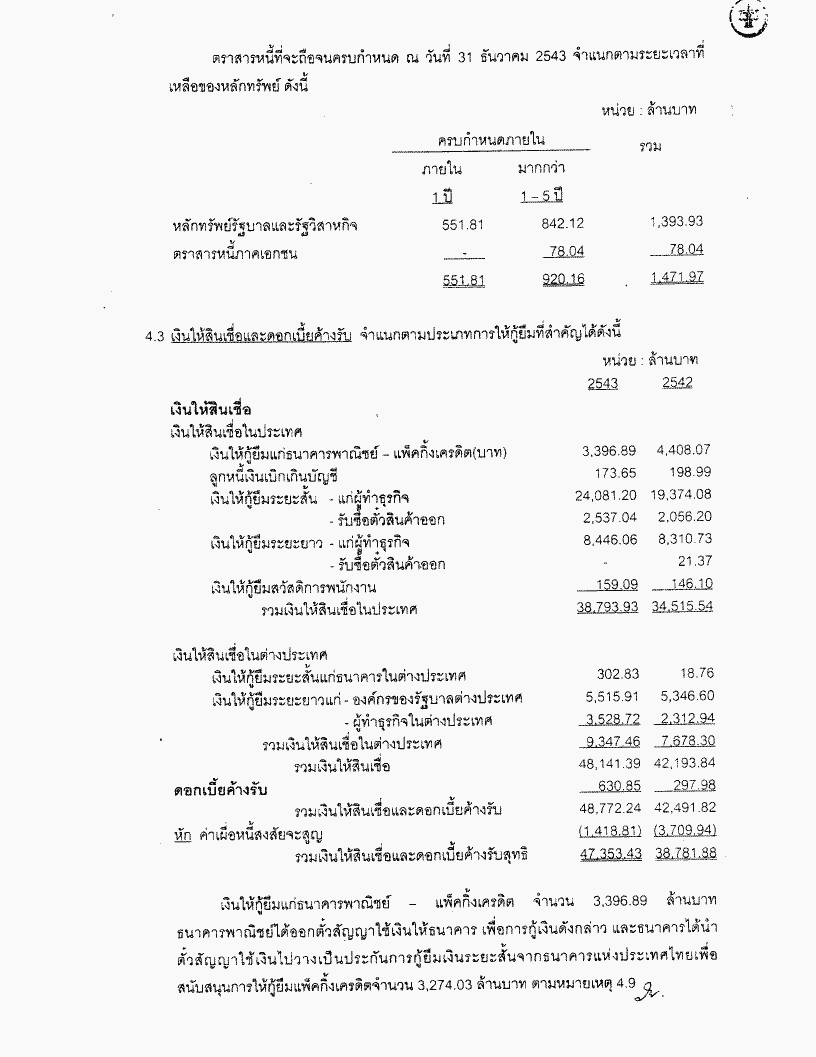 • รายงานกิจการประจำปี งบดุล บัญชีกำไรและขาดทุนของธนาคารเพื่อการส่งออกและนำเข้าแห่งประเทศไทย ประจำปี 2543