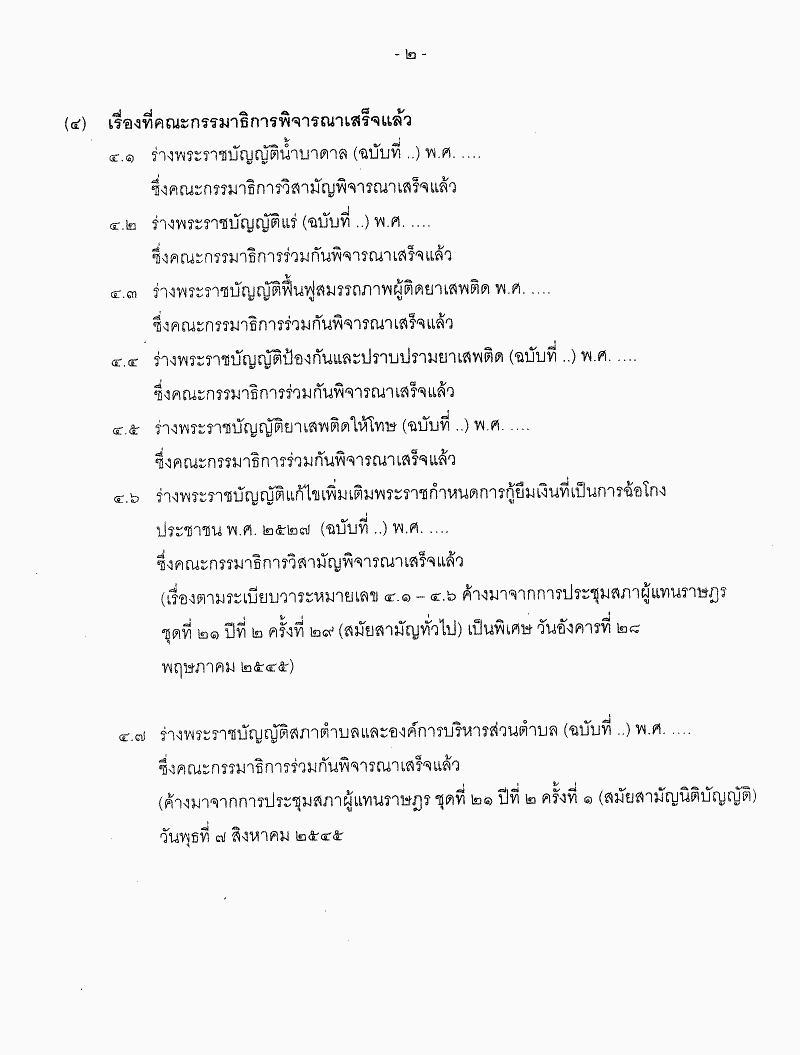 • ระเบียบวาระการประชุมสภาผู้แทนราษฎร ชุดที่ 21 ปีที่ 2 ครั้งที่ 3 (สมัยสามัญนิติบัญญัติ) วันพุธที่ 14 สิงหาคม 2545