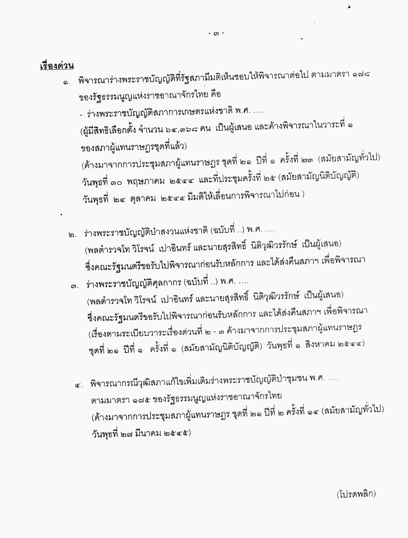 • ระเบียบวาระการประชุมสภาผู้แทนราษฎร ชุดที่ 21 ปีที่ 2 ครั้งที่ 3 (สมัยสามัญนิติบัญญัติ) วันพุธที่ 14 สิงหาคม 2545