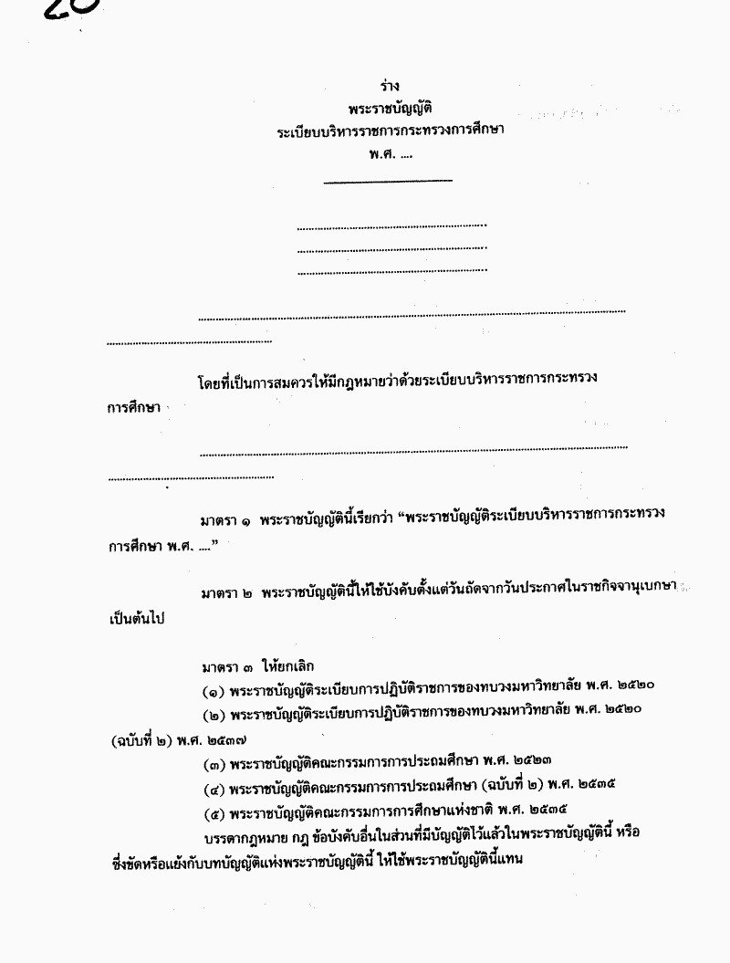 • ร่างพระราชบัญญัติระเบียบบริหารราชการกระทรวงการศึกษา พ.ศ. ....