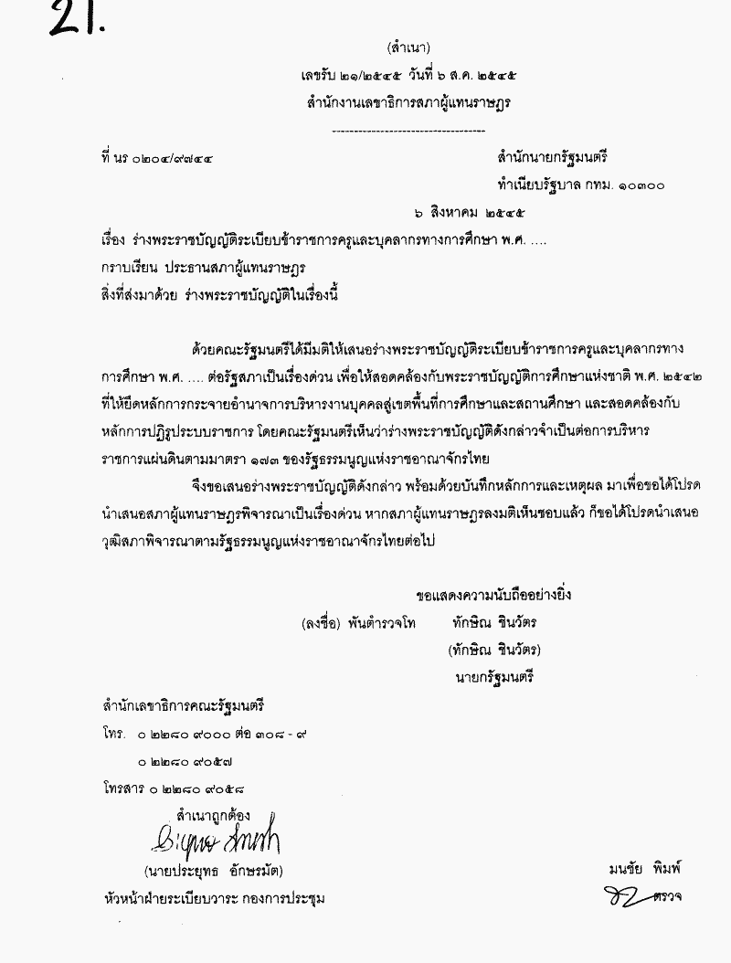 ร่างพระราชบัญญัติระเบียบข้าราชการครูและบุคลากรทางการศึกษา พ.ศ. ..... (คณะรัฐมนตรี เป็นผู้เสนอ)