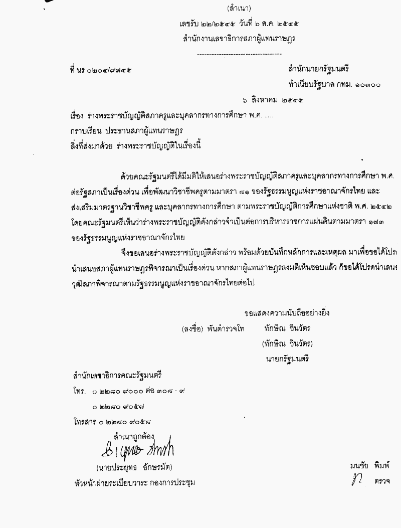 ร่างพระราชบัญญัติระเบียบข้าราชการครูและบุคลากรทางการศึกษา พ.ศ. ..... (คณะรัฐมนตรี เป็นผู้เสนอ)