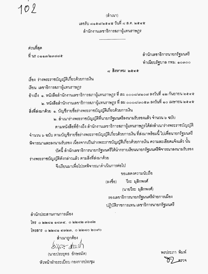 • ร่างพระราชบัญญัติเกี่ยวด้วยการเงิน