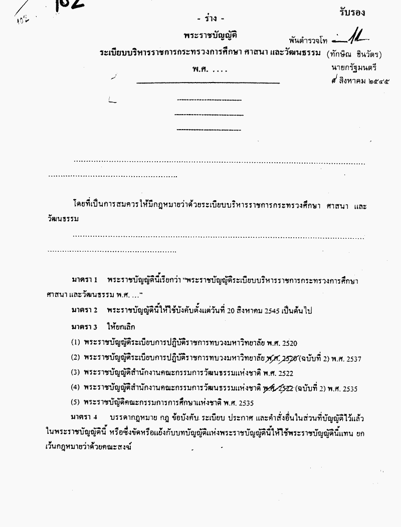 ชื่อเอกสาร :   ร่างพระราชบัญญัติระเบียบบริหารราชการกระทรวงการศึกษา ศาสนา และวัฒนธรรม (ศาสตราจารย์วิจิตร ศรีสอ้าน กับคณะ เป็นผู้เสนอ)