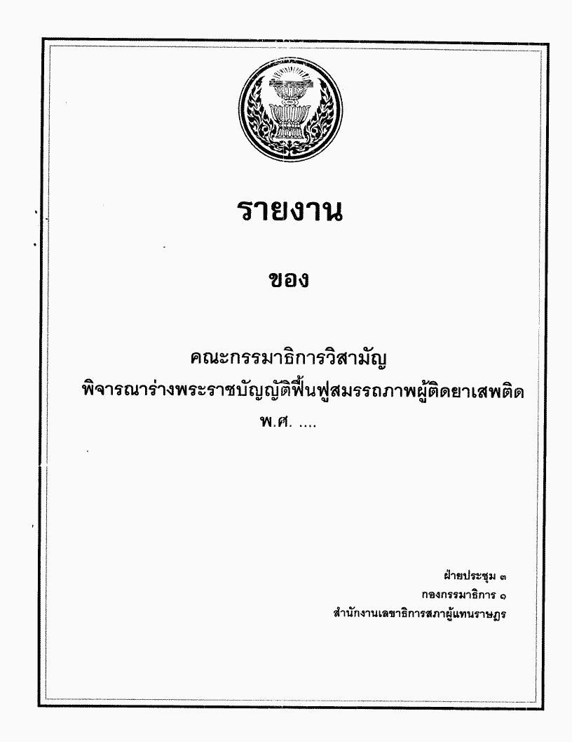 ร่างพระราชบัญญัติฟื้นฟูสมรรถภาพผู้ติดยาเสพติด พ.ศ... ซึ่งคณะกรรมาธิการวิสามัญพิจารณาเสร็จแล้ว