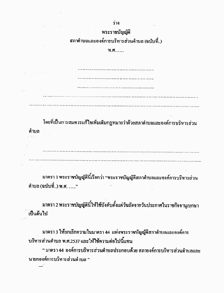 • ร่างพระราชบัญญัติสภาตำบลและองค์การบริหารส่วนตำบล (ฉบับที่ ..) พ.ศ. ...