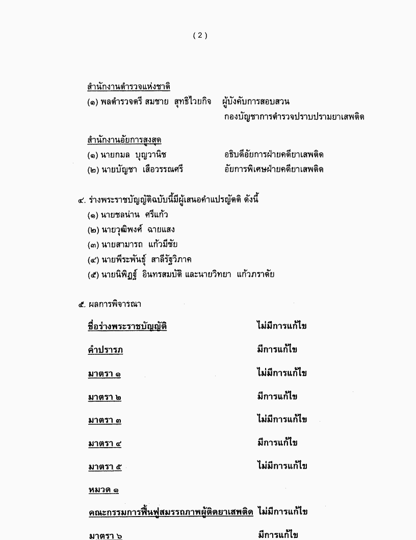 ร่างพระราชบัญญัติฟื้นฟูสมรรถภาพผู้ติดยาเสพติด พ.ศ... ซึ่งคณะกรรมาธิการวิสามัญพิจารณาเสร็จแล้ว
