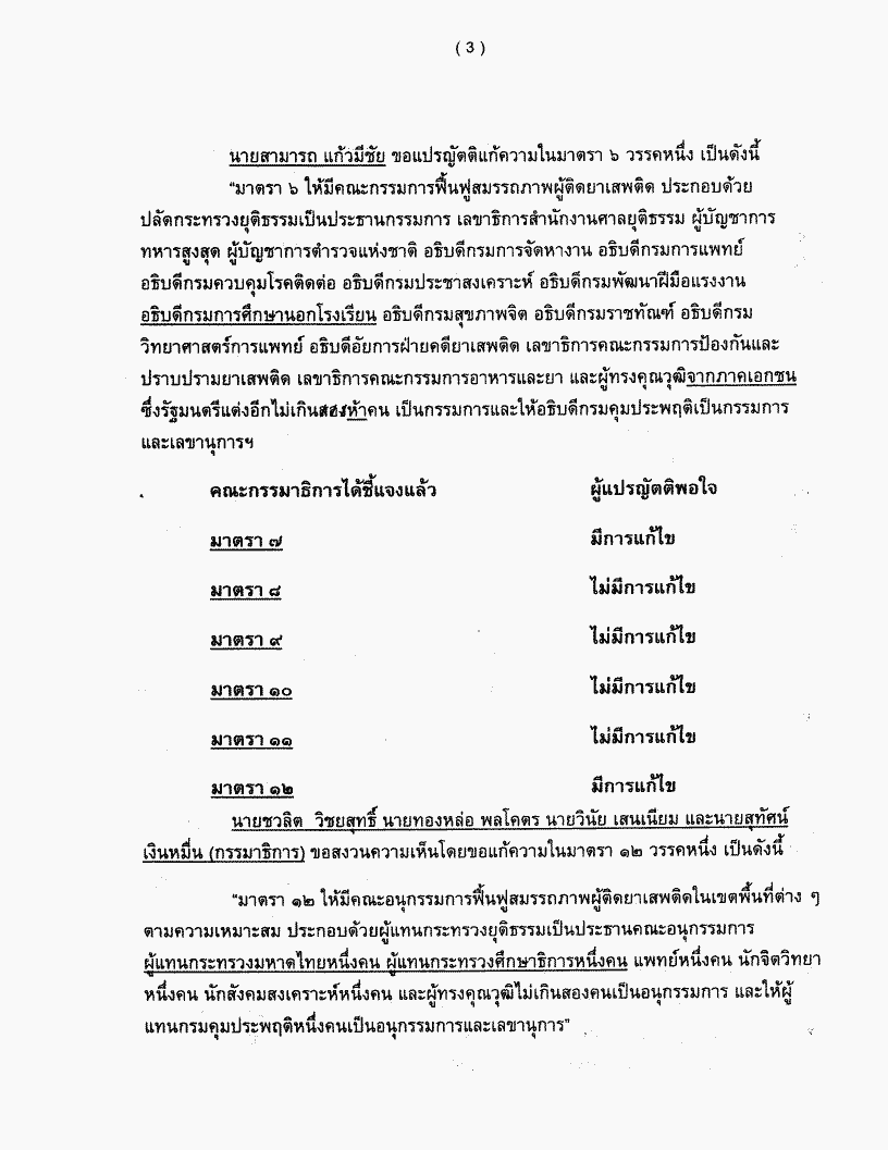 ร่างพระราชบัญญัติฟื้นฟูสมรรถภาพผู้ติดยาเสพติด พ.ศ... ซึ่งคณะกรรมาธิการวิสามัญพิจารณาเสร็จแล้ว