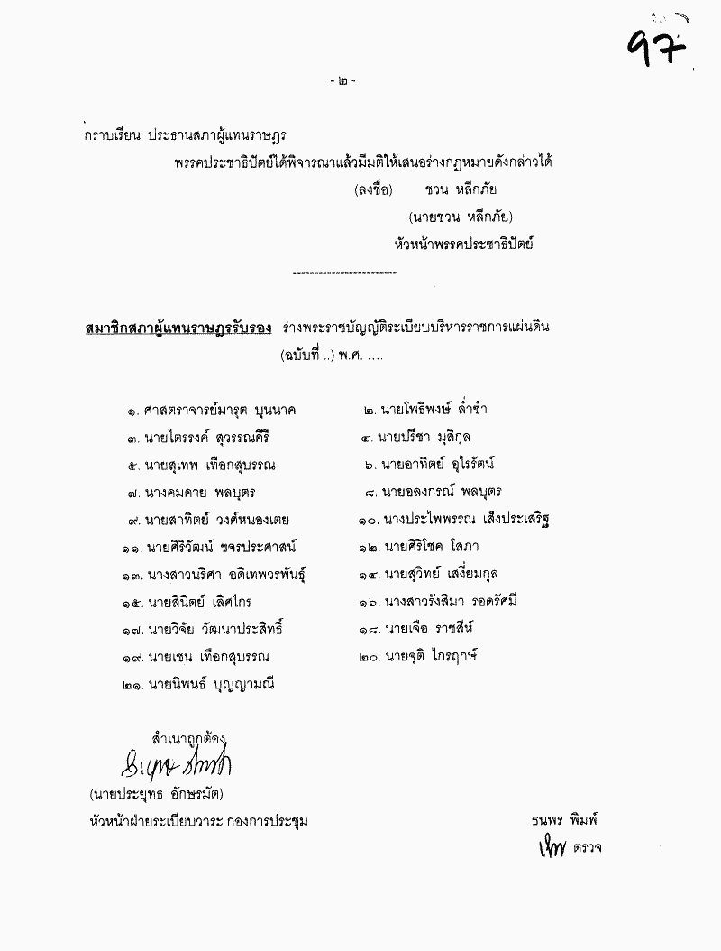 • ร่างพระราชบัญญัติระเบียบบริหารราชการแผ่นดิน (ฉบับที่ ....) พ.ศ. .... (ศาสตราจารย์วิจิตร ศรีสอ้าน กับคณะ เป็นผู้เสนอ)