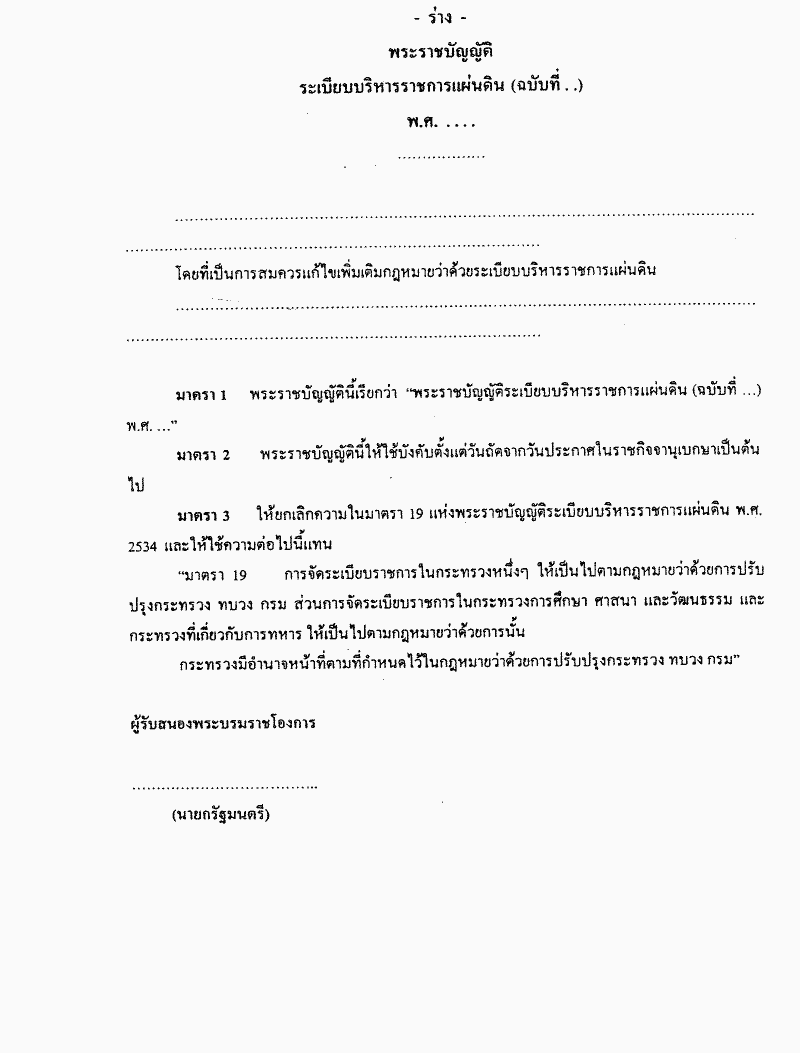 ร่างพระราชบัญญัติระเบียบบริหารราชการแผ่นดิน (ฉบับที่ ....) พ.ศ. .... |