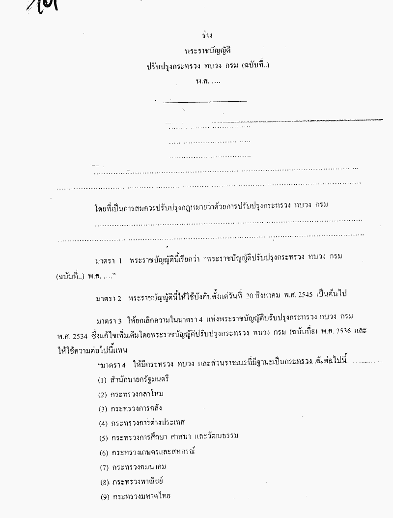 • ร่างพระราชบัญญัติปรับปรุงกระทรวง ทบวง กรม (ฉบับที่..) พ.ศ. ....