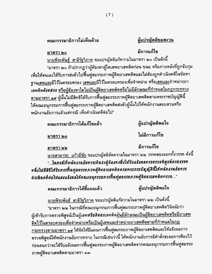 ร่างพระราชบัญญัติฟื้นฟูสมรรถภาพผู้ติดยาเสพติด พ.ศ... ซึ่งคณะกรรมาธิการวิสามัญพิจารณาเสร็จแล้ว